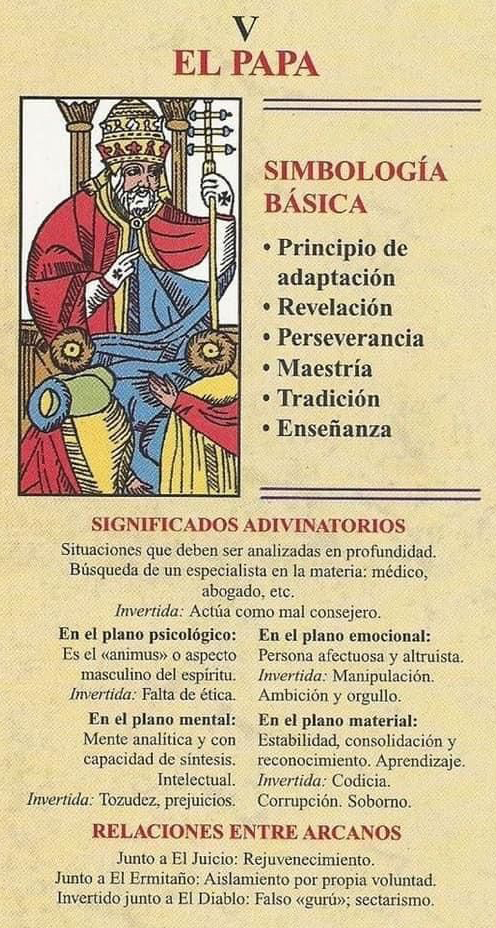 La carta del Hierofante en el Tarot representa un arquetipo profundo de tradición, espiritualidad y sabiduría. Como maestro espiritual y alquimista, el Hierofante guía a los buscadores en su búsqueda de un conocimiento superior y la iluminación espiritual. Su presencia nos recuerda la importancia de honrar las tradiciones antiguas mientras escuchamos nuestra sabiduría interior en nuestro viaje espiritual. A medida que atravesamos los reinos místicos del Tarot, la sabiduría del Hierofante sirve como luz guía, llevándonos hacia el crecimiento espiritual, la comprensión y la transformación. Que sus enseñanzas nos fortalezcan para abrazar la tradición, buscar guía espiritual y descubrir las verdades más profundas que se encuentran dentro de nosotros mismos y del mundo que nos rodea.