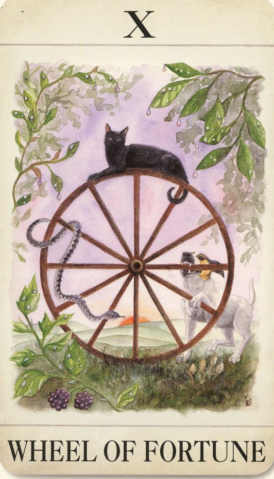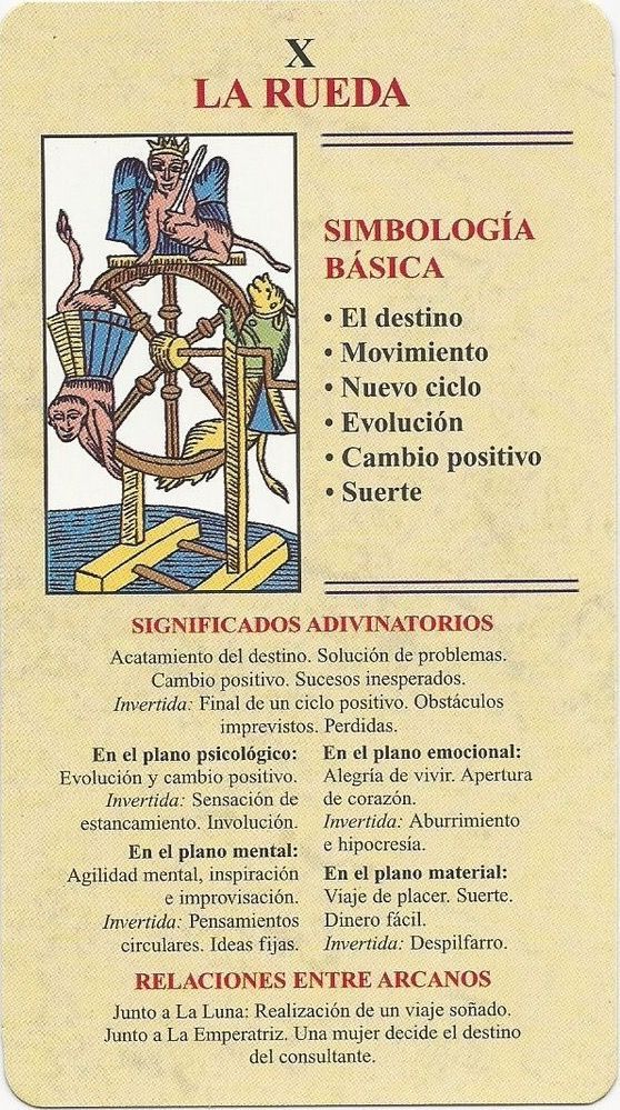 La carta del tarot Rueda de la Fortuna, un fascinante emblema de los ciclos, el destino y el interminable flujo y reflujo de la vida, nos invita a abrazar el cambio y la transformación con los brazos abiertos. A través de su simbolismo, interpretaciones e innumerables representaciones en diversas barajas de tarot, La Rueda de la Fortuna nos recuerda que la vida es un gran tapiz tejido por la interacción del destino y el libre albedrío. En un mundo marcado por la incertidumbre y el cambio, esta carta sirve como una guía luminosa, instándonos a alinearnos con la danza eterna de la rueda que gira y encontrar nuestro propio equilibrio dentro de sus elegantes revoluciones.
