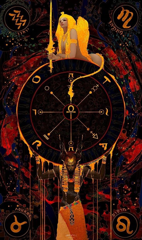 Las cuatro criaturas de las esquinas (a menudo un ser humano, un león, un toro y un águila) reflejan los diversos aspectos de la existencia y evocan el simbolismo de los cuatro signos fijos del zodíaco (Tauro, Leo, Escorpio y Acuario) y por ende, las estaciones del año. Estas cifras refuerzan la idea de que los ciclos de la vida están influenciados tanto por fuerzas externas como por estados internos.