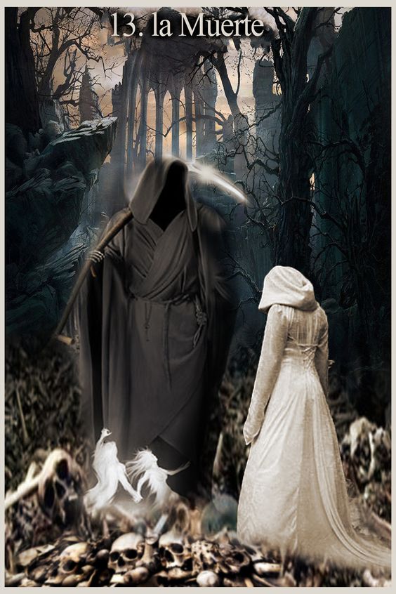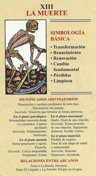 La carta de la Muerte en la mayoría de las barajas de tarot a menudo se representa como la figura esquelética empuñando una guadaña. Esto simboliza el final de una fase o aspecto particular de la vida. El sol en el horizonte insinúa la promesa de un nuevo comienzo, y el río que fluye representa el flujo imparable de la vida misma.