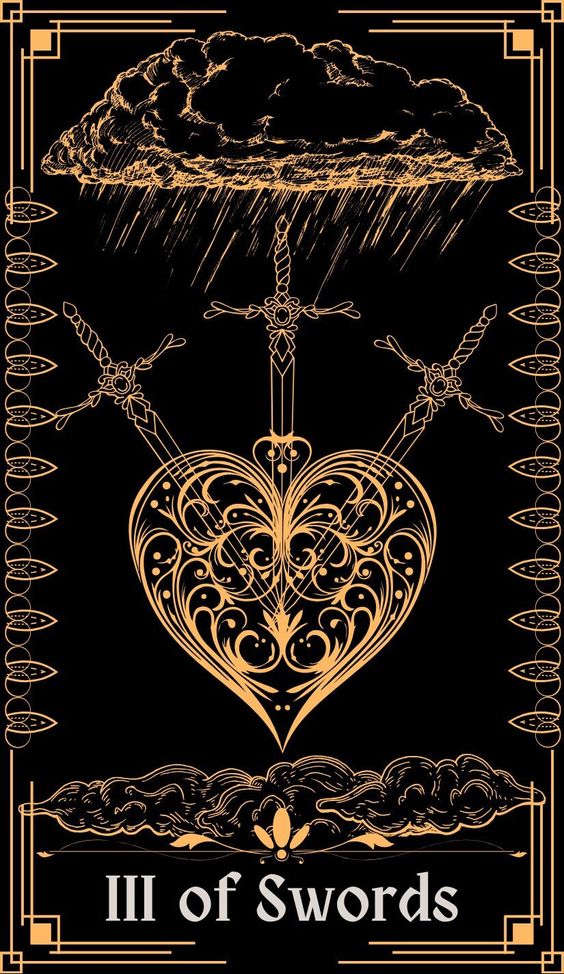 El Tres de Espadas retrata la angustia, la tristeza y el dolor emocional. A menudo representado con tres espadas atravesando un corazón, representa dolor, separación o agitación emocional resultante de una verdad difícil o una traición.