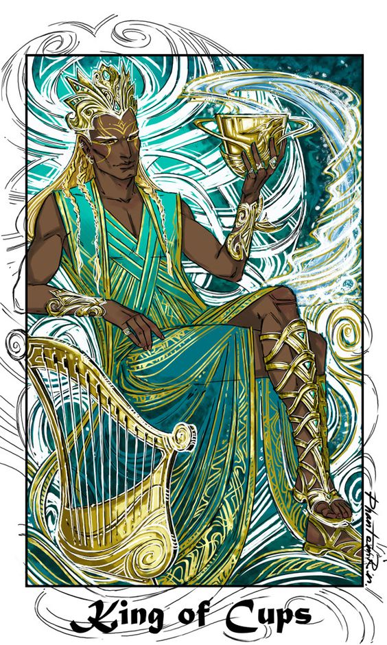 El Rey de copas simboliza el equilibrio emocional, la sabiduría y la madurez. Encarna la calma, la compasión y la capacidad de gestionar las emociones con gracia y comprensión.