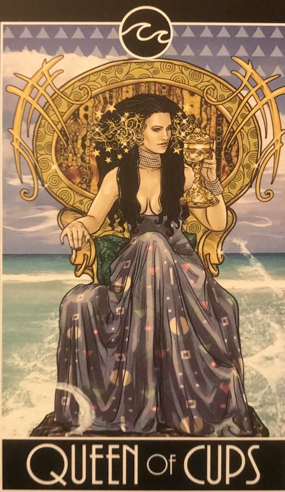 La Reina de copas encarna la empatía, la intuición y la madurez emocional. Ella representa una figura cariñosa y compasiva que valora la profundidad y la comprensión emocional.
