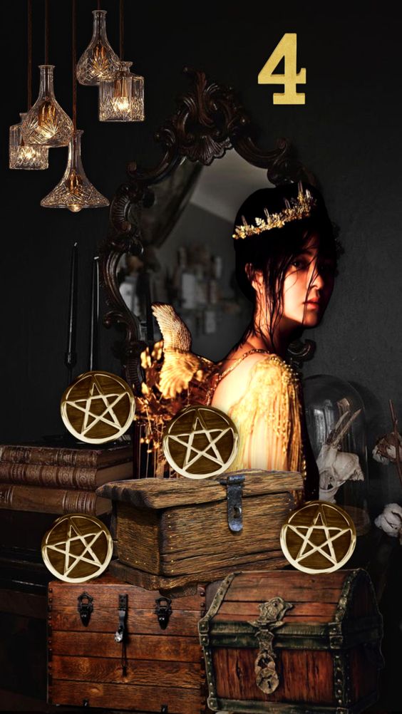 El Cuatro de Oros simboliza la estabilidad, la posesividad y la concentración en la seguridad material. Representa la retención de recursos, a veces en exceso, y la necesidad de encontrar un equilibrio entre ahorro y gastos.