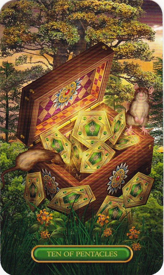 La riqueza, el legado y la abundancia caracterizan al Diez de Oros. Retrata la prosperidad familiar, la estabilidad financiera y la importancia del patrimonio o las tradiciones establecidas en la creación de riqueza.