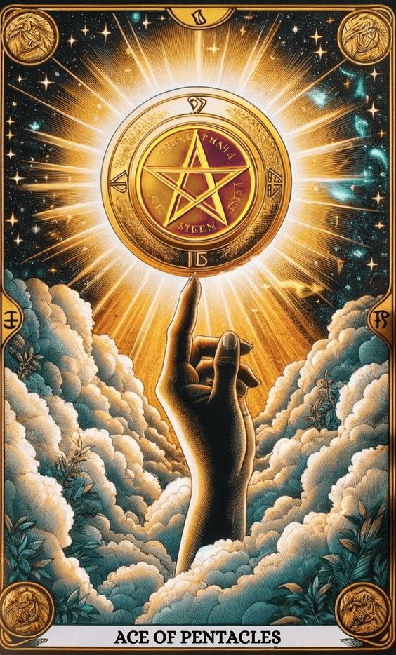 El As de Oros significa nuevos comienzos de prosperidad, potencial y nuevas oportunidades en el mundo material. Representa la semilla de la ganancia material, la abundancia y la manifestación de riqueza o una nueva empresa.