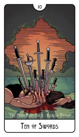 Si alguna vez te han traicionado o te han apuñalado por la espalda, el Diez de Espadas es la carta que verás en tu lectura del Tarot. Un amigo o pareja poco confiable te han lastimado profundamente.
