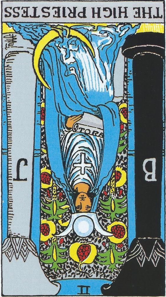 La Suma Sacerdotisa invertida a menudo refleja al amante. También puede indicar un amigo en el que no se puede confiar y que te oculta secretos.