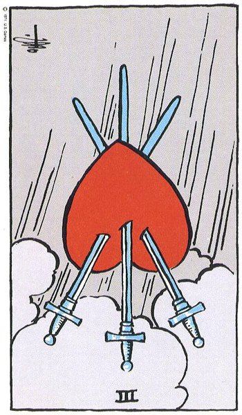 Casi siempre veo el Tres de Copas en posición invertida cuando hay un alguien más en una relación. A menudo, el cliente no es consciente de que su pareja le está engañando, pero al investigar más a fondo o con el paso del tiempo, se revela la verdad. Definitivamente se trata de un tercero no deseado que está alterando la armonía original.