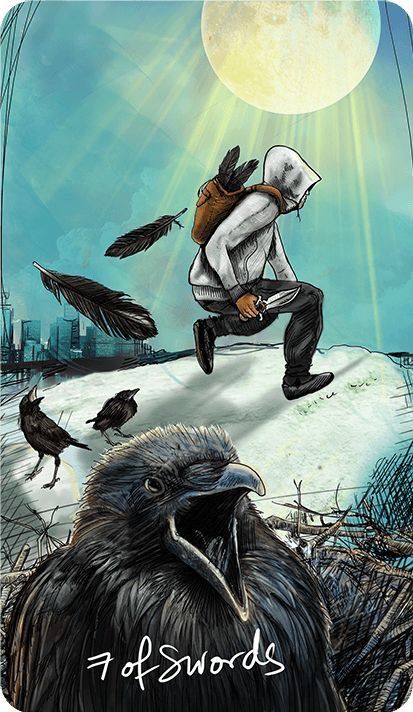 Si ves el Siete de Espadas en una lectura del Tarot, entonces sabrás que alguien está tratando de salirse con la suya con algo que no es «justo». Puede ser un socio infiel o un amigo poco fiable. Alguien esta en tus espaldas y piensa que se ha salido con la suya.