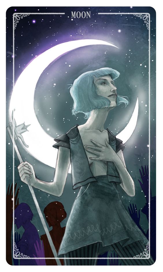 Es la carta definitiva de «energía femenina» asociada con los ciclos de la Luna (y también nuestros ciclos femeninos), el Agua, la noche y el poder de las emociones. En una tirada dedicada al embarazo, la Luna es muy bienvenida, especialmente si está rodeada de cartas positivas o neutrales, o simplemente si se dibuja sola. La Luna habla de lo que sucede bajo la superficie, de lo invisible. Como Concepción (al menos durante unas semanas).