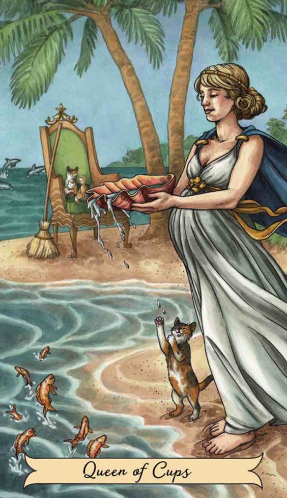 Otra reina. La Reina de Copas habla sin duda de felicidad en el amor y en el hogar. Si tu pregunta es sobre un futuro embarazo, entonces la Reina de Copas es la respuesta más positiva.