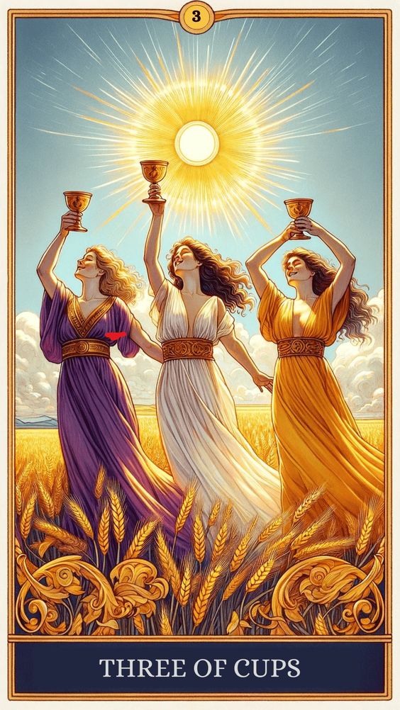 El 3 de Copas es la carta de los deseos concedidos y de la felicidad doméstica. También es muy literalmente el nacimiento que se le da a un tercero por la unión de 2 copas. La chispa necesaria para formar una familia nueva y joven.